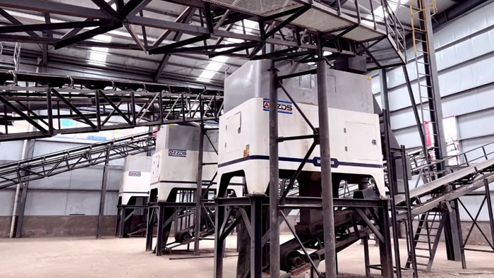 【設備配置】:VS振動篩分(fèn)喂料機、JC顎式破碎(suì)機、AF建築垃圾專用破碎機、YK高效封閉圓(yuán)振動篩、輕(qīng)物質分離設備(bèi)、除鐵係統、電(diàn)控(kòng)係統等。