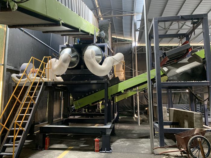 設備配置:板(bǎn)式喂料機、階梯棒條篩、雙軸撕裂機、滾筒篩、臥式打散風(fēng)選機、人工分揀倉、除鐵器、收塵(chén)器等