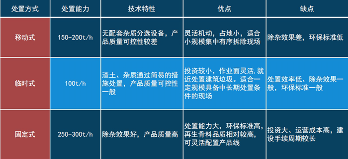 多種建築(zhù)固廢處置模式的形成,有利於根(gēn)據不同條件下選擇合適(shì)的(de)處置方式,靈活多變,適應各種時產,而且(qiě)多種處置模式可以項(xiàng)目(mù)搭配,合理(lǐ)布局,形成固定式+移(yí)動式(shì)的1+1組合模式或者固定式+多條臨時式的1+N的布局,這(zhè)都有助於一個區域甚至一個城市建築固廢處置的整體規劃。