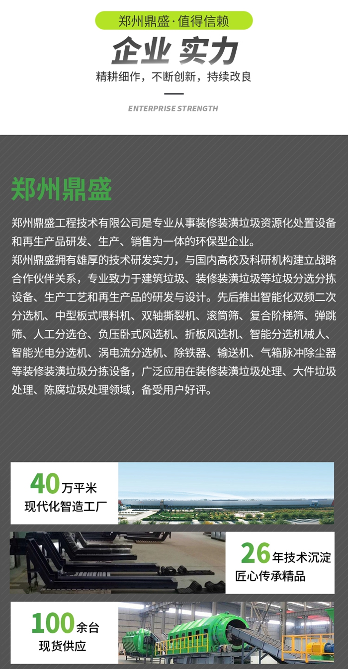 鄭州鼎(dǐng)盛再(zài)次(cì)斬獲大型裝修垃圾處置項(xiàng)目訂單!由色多多免费视频提供的裝修裝(zhuāng)潢垃圾處(chù)理生產線,將作為客戶公司規劃建設的市級示範性(xìng)固廢(fèi)循環產業園的重要一(yī)環。