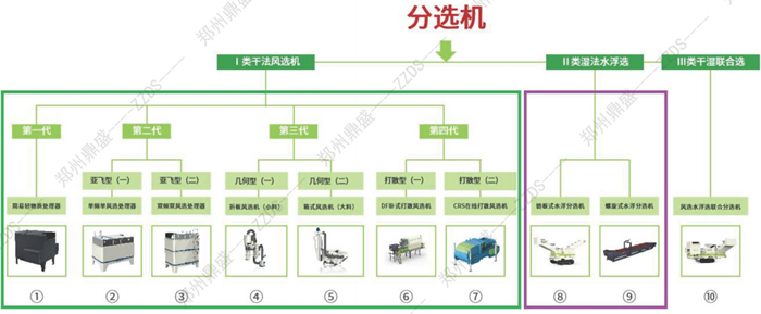 2、除雜裝備:鏈板(bǎn)式水浮分選機;螺旋式(shì)浮選分選機;幹濕聯合分(fèn)選機。