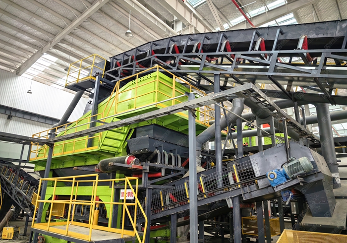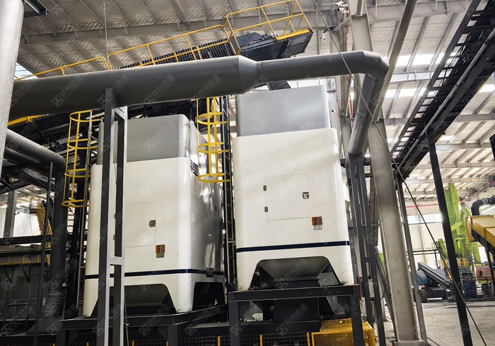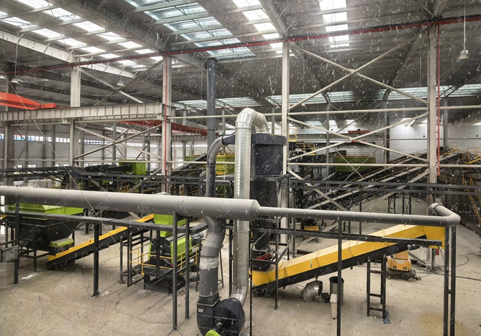 核心設備:破碎機(顎(è)式(shì) + 反擊(jī)式(shì))、篩分機(振動(dòng)篩 / 滾筒篩)、分選(xuǎn)設備(bèi)(磁選機、渦電流分(fèn)選機、風選機)、輸送機、水洗係統(若有)、環保設備(除塵、降噪(zào)、汙水處理)。