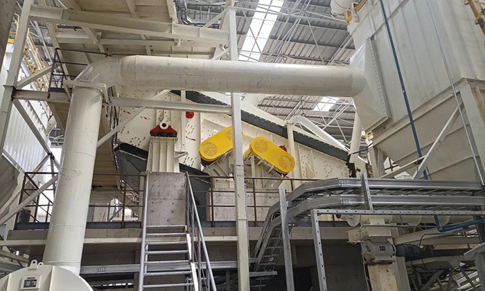 設備配(pèi)置:VS振動(dòng)篩分給料機、JC顎式破碎機、AF反擊式破碎機、YK建築垃圾專(zhuān)用圓振動篩、箱(xiāng)式風選(xuǎn)機(大料)、RV製(zhì)砂機、卸料機、除鐵器、皮帶機、除塵設備(bèi)等