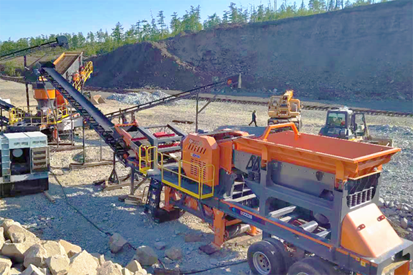 設備(bèi)配置:輪胎(tāi)式移動破碎站、輪胎式移動篩分站