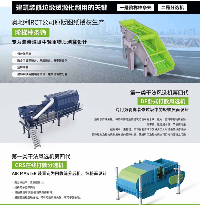 以上裝修垃圾分類分選係統用(yòng)到(dào)的整套分選設備鄭州(zhōu)色多多免费视频都提供,並且得到客戶廣泛認可,歡迎電話谘詢:0371-53738676!