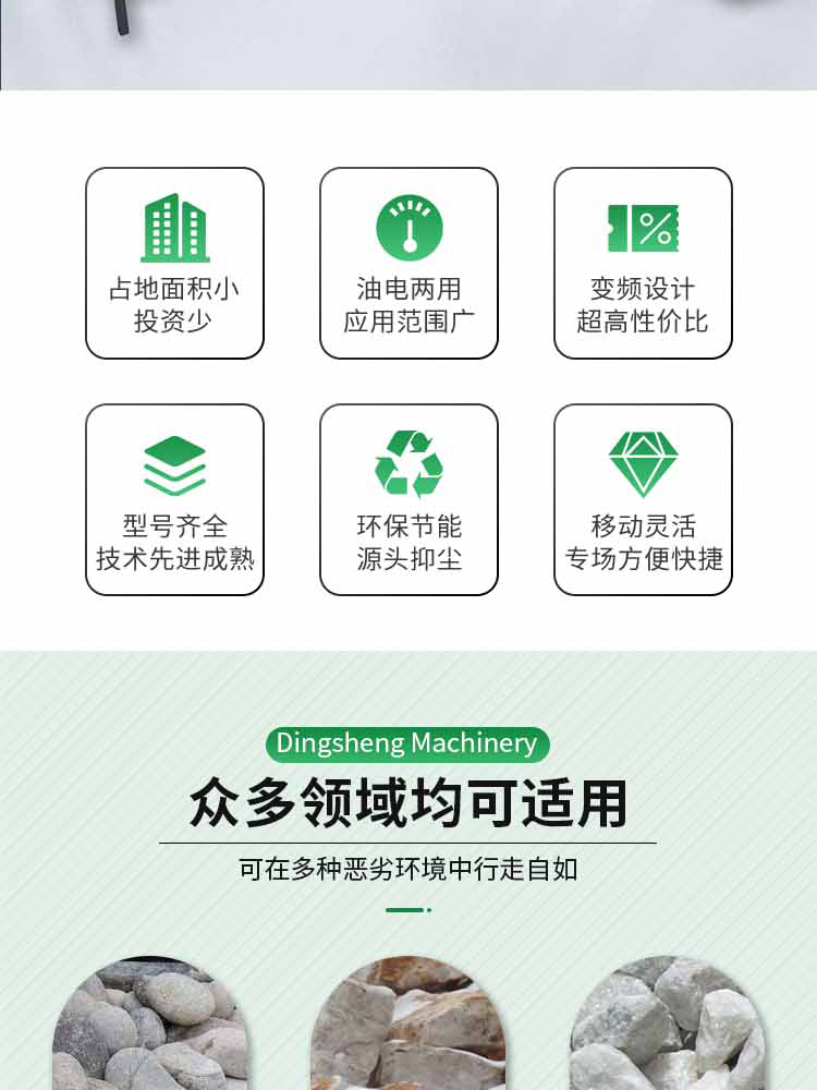 該生產線移(yí)動靈活、操作靈便、作業安全、環保節能,而且加工出的成品砂規(guī)格多樣(yàng)、品質優良,在市場上擁有很強競爭(zhēng)力,給我廠帶來了不菲的(de)經濟利潤。