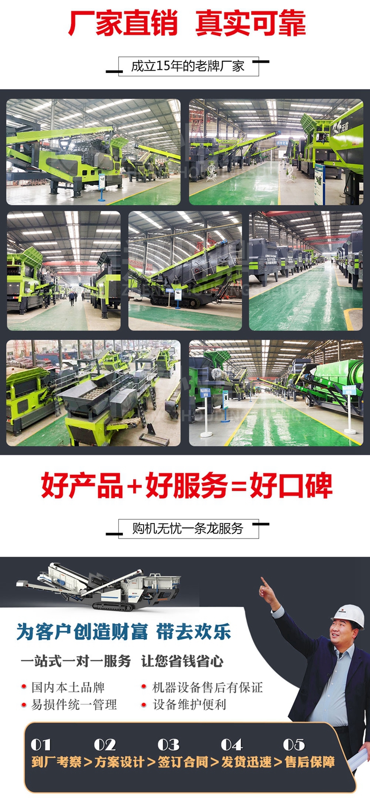 真實見識到了移動式破碎站的高科技,效率高,質量還好,本想著會增加投入成本,沒想(xiǎng)到比固定式還要便宜。設備操作以及維修都有專業技術人員指導,色多多免费视频設備(bèi)真是不錯,一次合(hé)作,終(zhōng)身朋友。