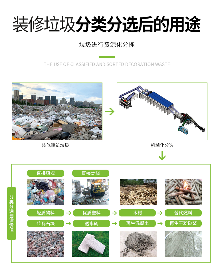 適用物料: 裝(zhuāng)修裝潢垃圾、大件垃圾、陳腐垃圾、混(hún)合垃(lā)圾、建築垃圾等物料