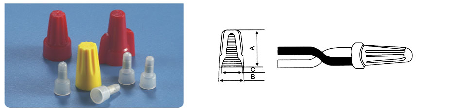 尼龍壓線(xiàn)帽是(shì)電(diàn)路中用來壓合導線連接節點(diǎn)的耗材,其材料(liào)采用(yòng)UL認可尼龍66料製成,防火等級94V-2和94V-0。使(shǐ)用方法(fǎ):將電線尾部(bù)外皮剝去再插入套管內,用壓線鉗壓(yā)緊即可(kě)。特點:外殼為(wéi)尼龍注塑成型、內部銅管特長(zhǎng),增加電線壓(yā)接範圍(wéi)使其更易於導電,並更能夾(jiá)住電線,即使強烈振動也不脫落。